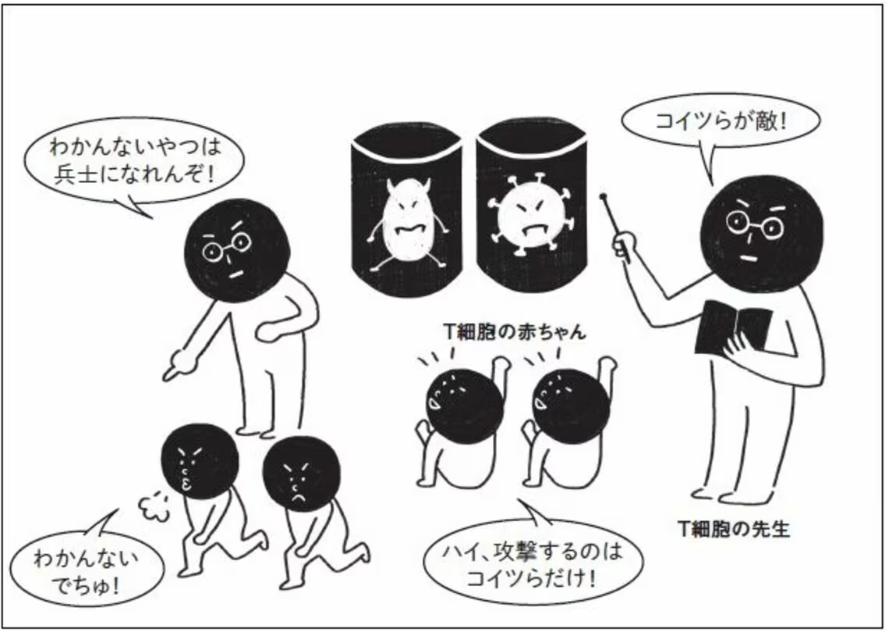 免疫システムの根幹となる戦うT細胞となるには、敵味方の識別能力が必須であるため、落ちこぼれには厳しい「自殺命令」や「配置転換」の措置が取られるのです。