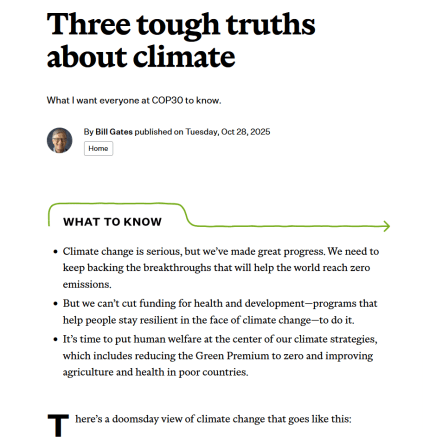 ビル・ゲイツが気候変動の絶対視をやめるに到った「3つの重い真実」…脱炭素一辺倒の世界潮流に大逆転は起きるのか(現代ビジネス 2025.11.18)