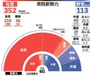 これに対し、中道で臨んだ今回の衆院選は、24小選挙区で自民に全敗し、比例は111万9155票(同16.5%)。前回衆院選と比べ、得票率が13.0ポイントの大幅減。参院選との比較では、2.9ポイント低下した。