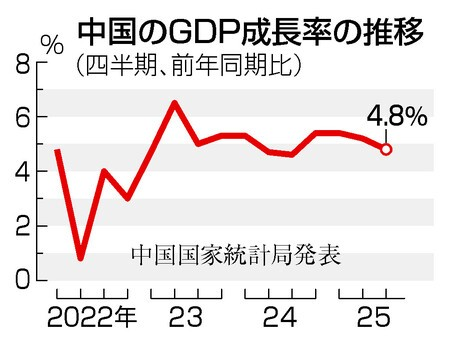 中国GDP、4.8%増 消費低迷で減速…7~9月期