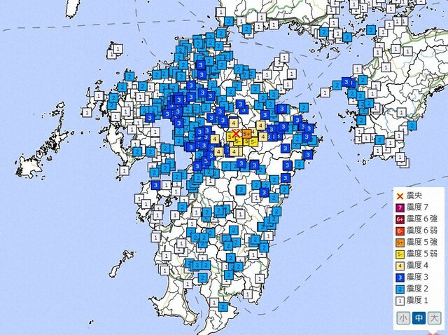 25日午後6時1分ごろ、熊本県産山村で震度5強の地震があった。気象庁によると、震源地は熊本県阿蘇地方で、震源の深さは約10キロ。地震の規模はマグニチュード(M)5・7と推定される。大分県竹田市でも震度5弱を観測した。津波の心配はない。