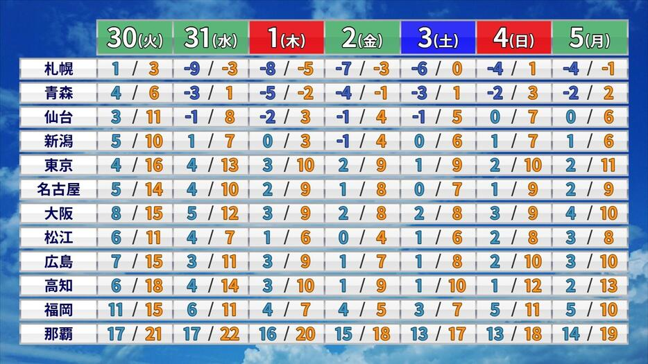 きょう(月)は全国的に寒さが和らぎましたが、あす(火)の最高気温は関東から西で15℃以上の所が続出して季節外れの暖かさになりそうです。