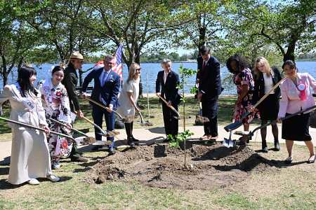 ワシントンで桜の植樹式 建国250年を記念して日本政府が贈呈